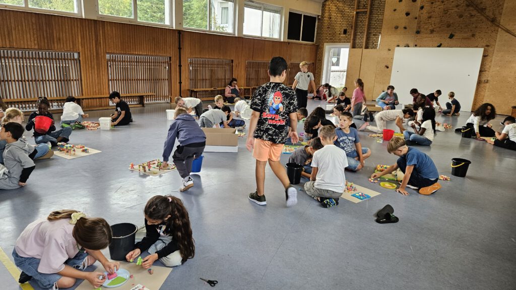 Nachdem sich alle beim Mittagessen an Nudeln und einer großen Salatbar stärken konnten, ging es in die Turnhalle und die Kinder erbauten mit Hilfe von Play-Mais ihre eigene Stadt.